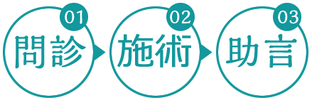 施術後、体質にあった健康法や生活の工夫のアドバイスをさせていただきます。気になることがありましたら、何でもお尋ねください。西洋医学の病院にも行った方が良いと感じた場合は率直にお伝えします。